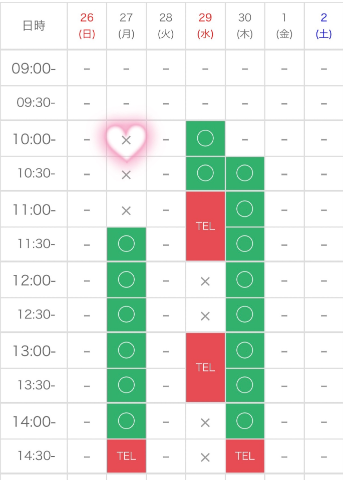 27(月)10時ご予約の本指名さま